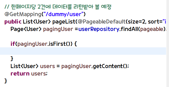 이렇게 size=1이라고 하면 한페이지에 하나만 나올것이다.